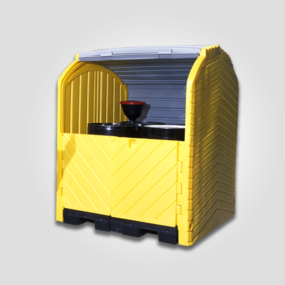 Modelo: Cobertizo exterior para 2 tambores, con drenaje. 250 L